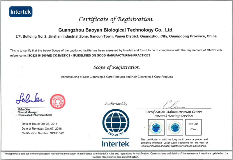 廣州葆妍生物科技有限公司位于廣州番禺金山工業(yè)園,成立于2009 年,經(jīng)營面積20000平方,集化妝品(護膚類、彩妝類)配方開發(fā)、生產(chǎn)加工于一體,專業(yè)化、規(guī)?;幕瘖y品OEM/ODM/OBM企業(yè)。